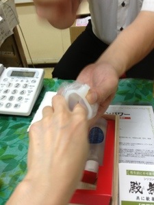 店主はしゅぱしゅぱとそのシリコン製の入れ物に空気を入れだした
