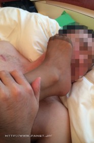 うずくまり パンスト脚で ゆかパンストつま先 顔を踏みつけ 脚コキ 相互パンスト 踏みつけ 乳首を